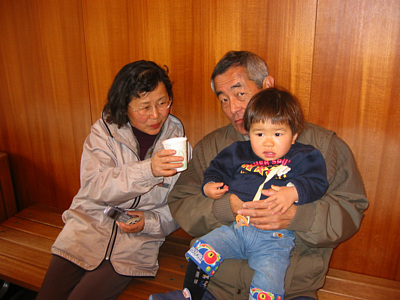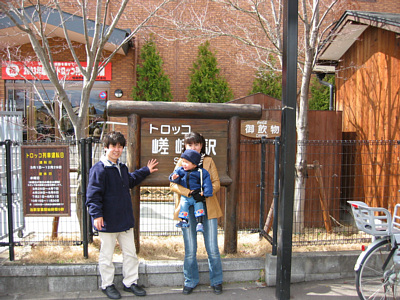 ![]() 3月10日 嵯峨駅でトロッコ列車を待ってるの. 僕,じいちゃんとばあちゃんと仲良しだよ♪ |