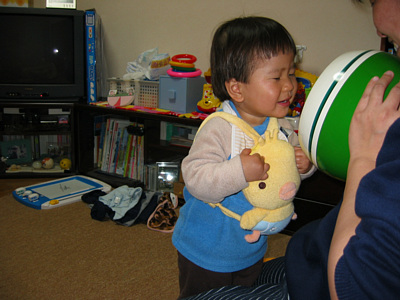 ![]() 3月17日 ままのお友達がプレゼントしてくれた,ひよちゃんリュックだよ. えっ,逆?背中にしょったら見えないから,これでいいんだよ. |