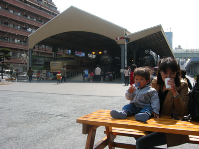 ![]() 3月30日 今度は弁天町の交通博物館でジュース休憩. 大好きな電車がいっぱいでワクワク♪ |