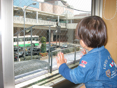 ![]() 4月13日 生駒駅前のモスバーガーの2階の窓からは,ロータリーが 見えるからバスにくぎ付け.「ばぷ〜っ!」 |