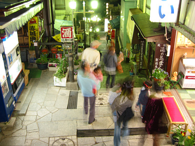 ![]() 4月30日 夜の温泉の石段街をお散歩.もう抱っこしないで〜, 僕一人で歩くんだってば〜.ジタバタジタバタ! |