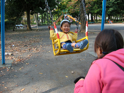 ![]() 11月23日 すんぷ公園内の児童遊園でブランコで遊んだよ. 一人で乗れるから楽しいな♪ |