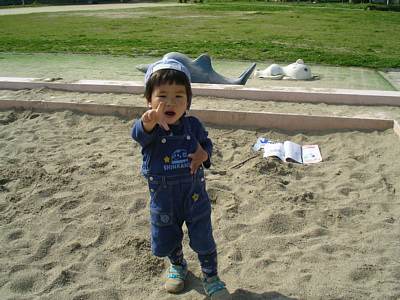 ![]() 4月 6日 角田公園の砂場でハイポーズ.何撮ってんの〜! かあちゃんも早く一緒に遊んでよ〜! |