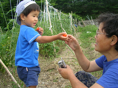 ![]() 7月 3日 静岡のじいちゃんばあちゃんの畑で野菜をもいで食べたよ. いつもは食べられないトマトをいっぱい食べたよ. |