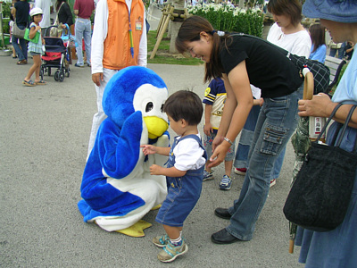 ![]() 7月 4日 浜名湖花博で着ぐるみのペンギンちゃんと握手. 暑くてぐずぐず言ってたけど,かなり楽しかったらしい. |