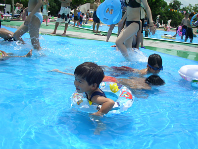 ![]() 7月19日 奈良ドリームランドでプール初体験.最初は恐がったけど, 段々慣れて流れるプールも入れたよ. |