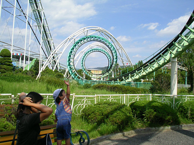 ![]() 7月19日 ドリームランドのこのジェットコースターに釘付けで,暑い中 長いこと見ていたよ.金はかからんけど付き合うのは結構しんどい. |