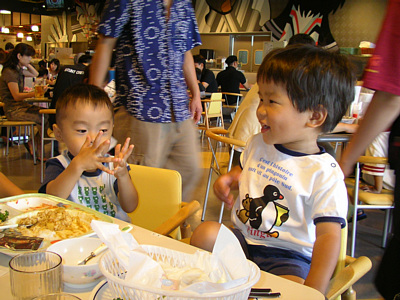 ![]() 7月25日 太秦映画村の食堂できみ君と隣で大はしゃぎでランチ中. きみ君は年に数回しか会えないのだが,超大好きでうまが合うのだ. |