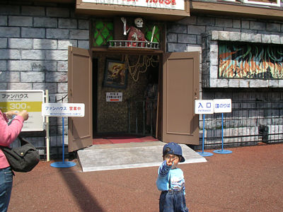 ![]() 4月 9日 神戸ポートピアランドのお化け屋敷の前でニコニコ. でも1度入った後はもう入りたがらなかったのだ(^_^;) |