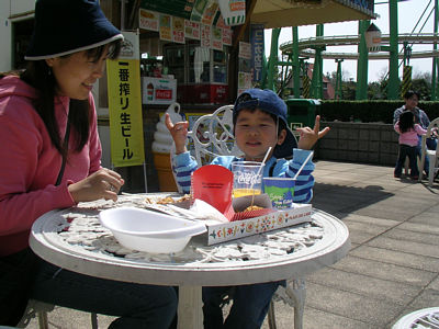 ![]() 4月 9日 ポートピアランドでご機嫌でランチ中. 次は何に乗ろうかな?またジェットコースター見るのかな? |