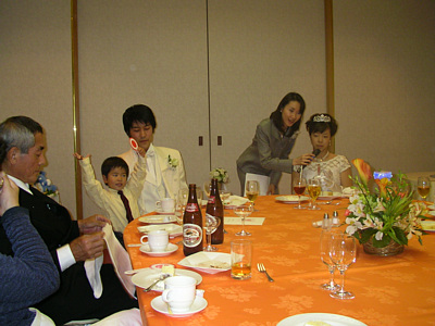 ![]() 5月 1日 披露宴の○×クイズで一番盛り上がるりく. 最後の新婦の両親への手紙の最中もまだ騒いでました. |