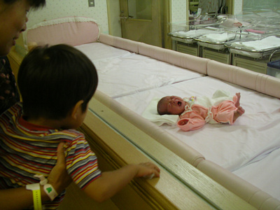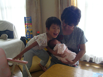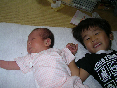 ![]() 8月21日 待望の赤ちゃんが退院してきました. やっとさわることができてご機嫌. |