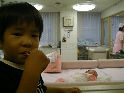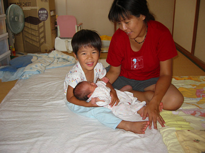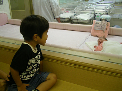 ![]() 8月18日 「お兄ちゃんだよ〜」初めてあった赤ちゃんにもうメロメロな顔. いい兄ちゃんになりそうだね♪ |