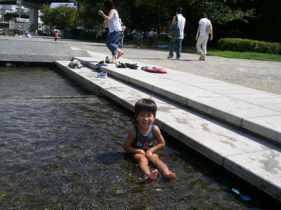![]() 8月20日 炎天下の大阪城公園で水遊び.付き合う大人は結構大変. 水着のまま隣の公園で滑り台もしたよ. |