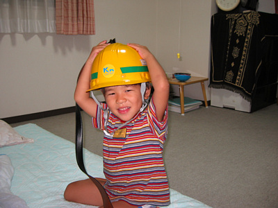 ![]() 9月 5日 チチのヘルメットをかぶってポーズ. 将来はチチみたいな仕事がしたい? |