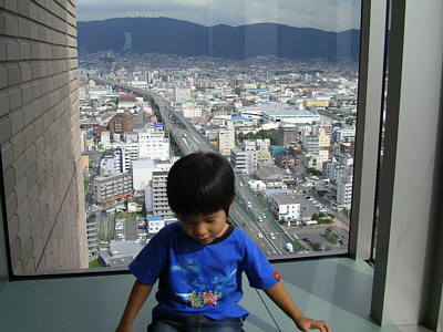 ![]() 9月10日 市役所の展望ロビーからうちが見えるね. 見晴らしがよくて気持ちいいのだ. |