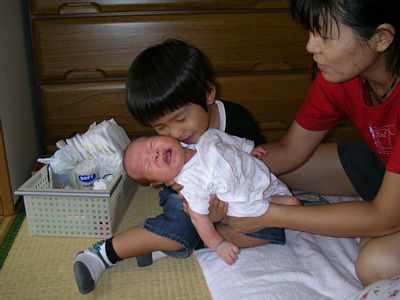 ![]() 9月11日 泣いてるのに抱っこさせてなんて もっと泣いちゃうよ〜. |