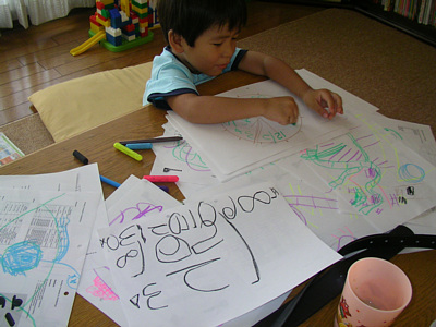 ![]() 10月 1日 ひらがな・カタカナ・数字が読めたり書けたりするように なりました.字を読むのがおもしろい時期. |