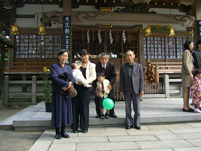 ![]() 10月30日 萌笑のお宮参りの日.大好きなじいちゃん達に囲まれて 幸せなりく.タクシーで枚岡神社へ. |