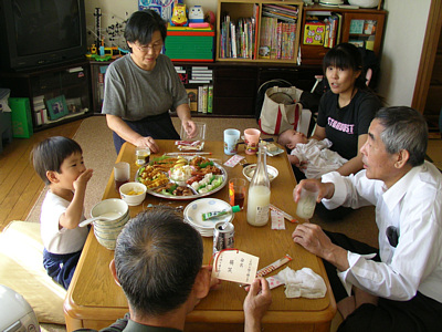 ![]() 10月30日 帰宅してからはお祝いの昼食. 皆がにぎやかにそろってご満悦. |
