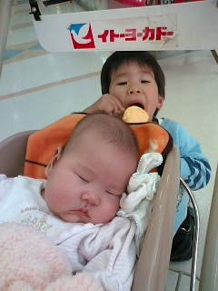 ![]() 11月25日 平日の午後のいつもの風景.ままと3人でヨーカドーで 遊んで,萌笑が寝てる間におやつ. |
