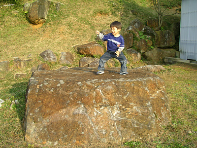 ![]() 11月 3日 ここも誰も寄りつかない遊園地の敷地内の巨大な岩. 変な顔で変なポーズで決めるりく. |