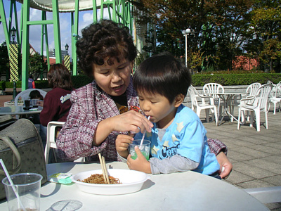 ![]() 11月12日 ランチタイム.でもりくはほとんど食べずに走り回ったり, ジェットコースターを見たりに夢中. |