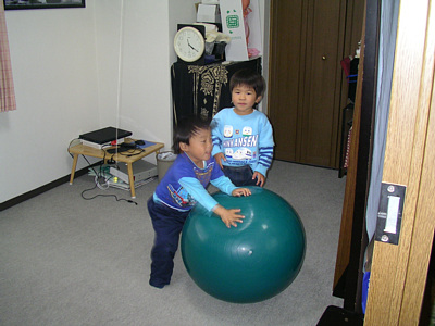 ![]() 11月19日 きみ君が遊びに来てくれたよ.二人はこのボールの取り合いしたり 仲良く遊んだり,少し男の子らしい付き合いになってきたかな? |