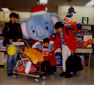 ![]() 12月24日 おむつを買ったらパンパ君と写真を撮ってもらえました. 初めての4人での写真です. |