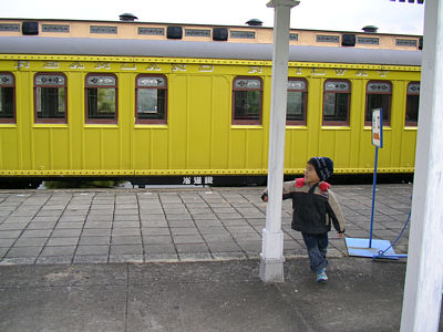 ![]() 12月30日 ドリームランドの外周列車を待ってるところ. ディーゼル車の本物が走ってるんだよ! |