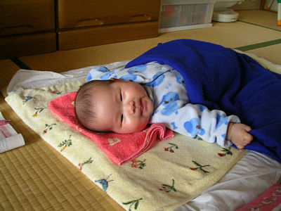 ![]() 1月 5日 にこにこのもえたん.寝起きはすこぶるよい子. 泣いて起きることはほとんどありません. |