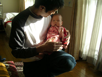 ![]() 1月 1日 のりとおじちゃんが遊びに来てくれたよ. 新米パパだけどだっこ上手だね♪ |