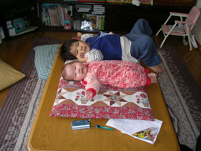 ![]() 1月 2日 お兄ちゃんがだっこしてあげるね. ちょっと不安? |