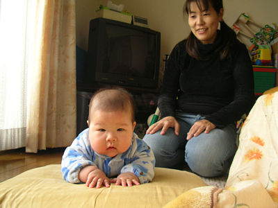 ![]() 1月18日 初めて寝返り一人で成功しました! うれしいけど,ますます目が離せなくなるね. |