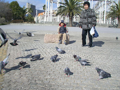 ![]() 2月12日 まあちゃんとモザイクにきました. 鳩にえさやりしてご機嫌♪ |